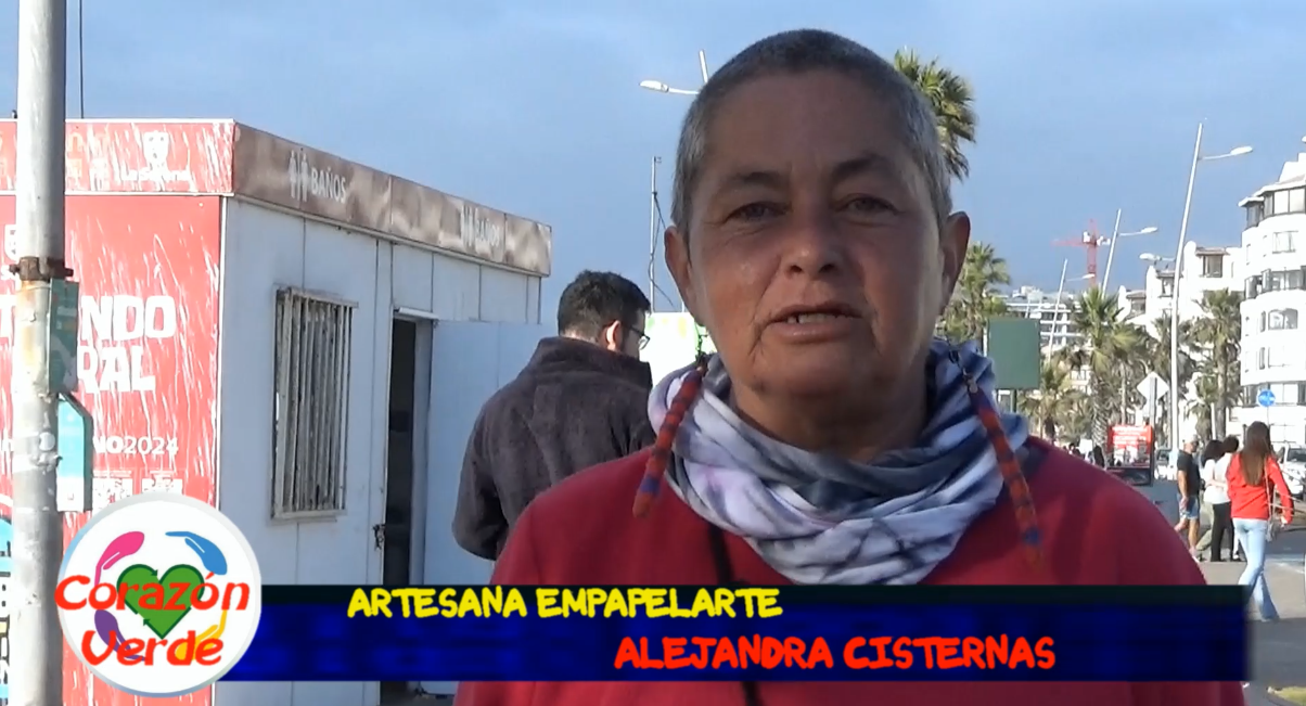 Artesanos de Chile programa de tvelqui.cl junto a Corazón Verde Alejandra Cisternas expositora en la Feria de Economía Circular realizada en la Avda. del Mar en La Ciudad de La Serena
